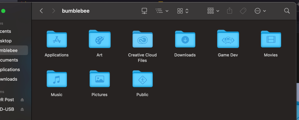 I don’t like the blank folder design when I need more parent directories so I made these. One for game dev and one for art stuff