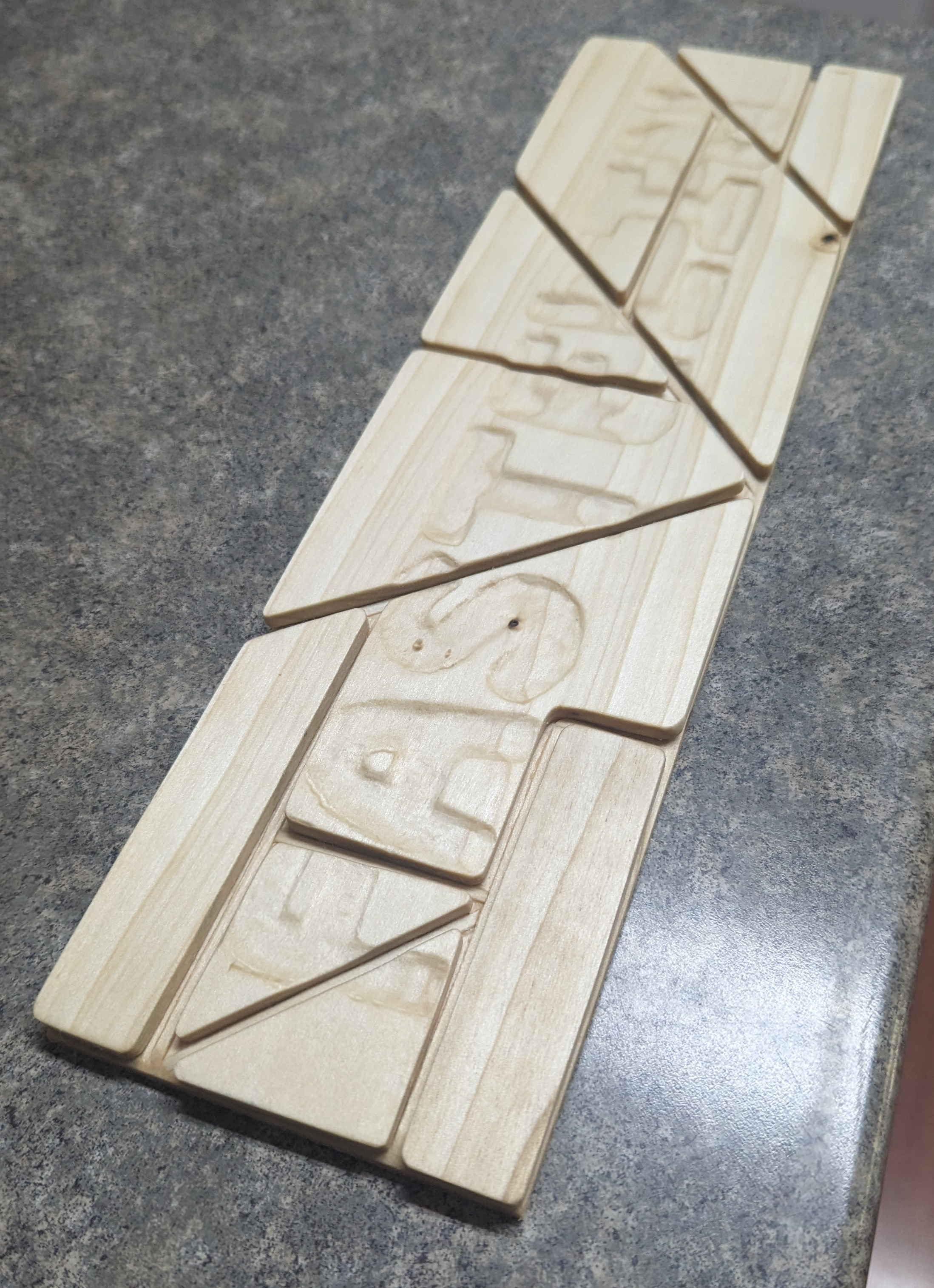 My first try at making a wood block puzzle for my nephews. Thank you to Ashley, Gerard, Josh and Merlyn and of course my Mom for not letting me put this on the shelf because of perfectionism.